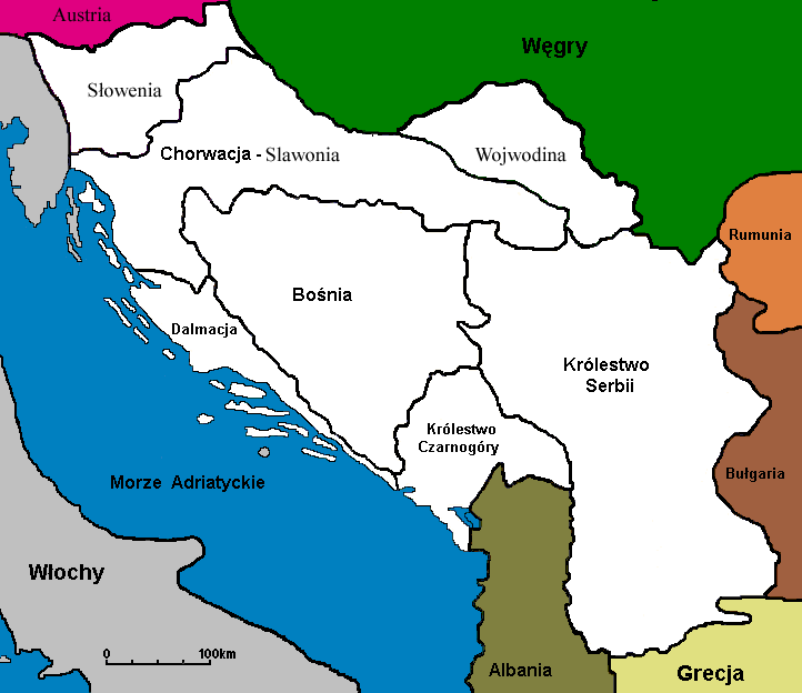 Królestwo Serbów, Chorwatów i Słoweńców w 1918 roku; źródło: Wikipedia.