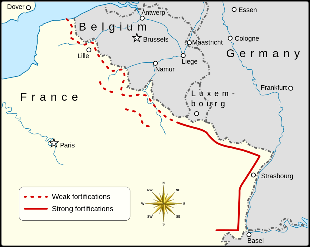Dla Belgii jedyną szansą obrony granic przed atakiem niemieckim był bliski sojusz z Francją i Wielką Brytanią. Linia Kanału Alberta i innych frontów wodnych była łatwa do obrony. Gdyby armie brytyjskie i francuskie, wspomagane przez armię belgijską, tuż po wypowiedzeniu wojny znalazły się na granicy Belgii we właściwym czasie, można by było z tych pozycji rozpocząć bardzo silną ofensywę przeciwko Niemcom. Ale rząd belgijski uznał, że ich bezpieczeństwo zależy od ścisłej neutralności, a ich jedyna nadzieja opierała się na wierze w dobrą wolę Niemców i poszanowanie przez nich traktatów.