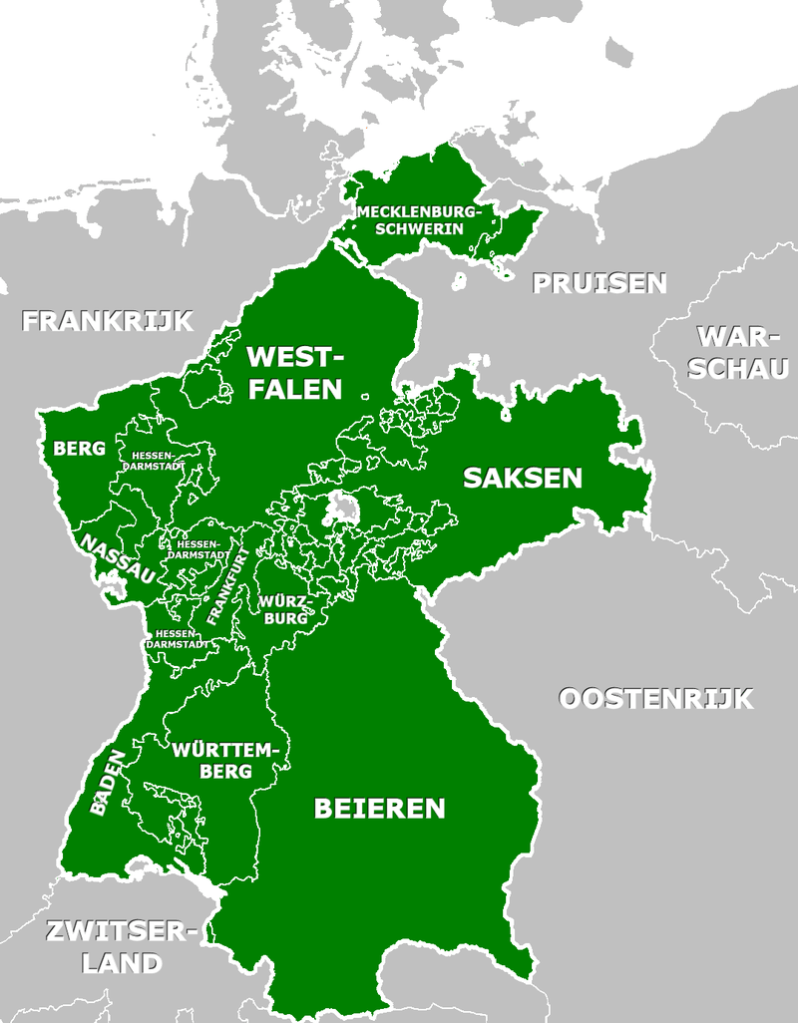 Do Związku nie weszły: Cesarstwo Austrii, Bawaria, Wirtembergia, Badenia, część Hesji, Luksemburg, Liechtenstein, oraz kantony szwajcarskiej Alemanii.