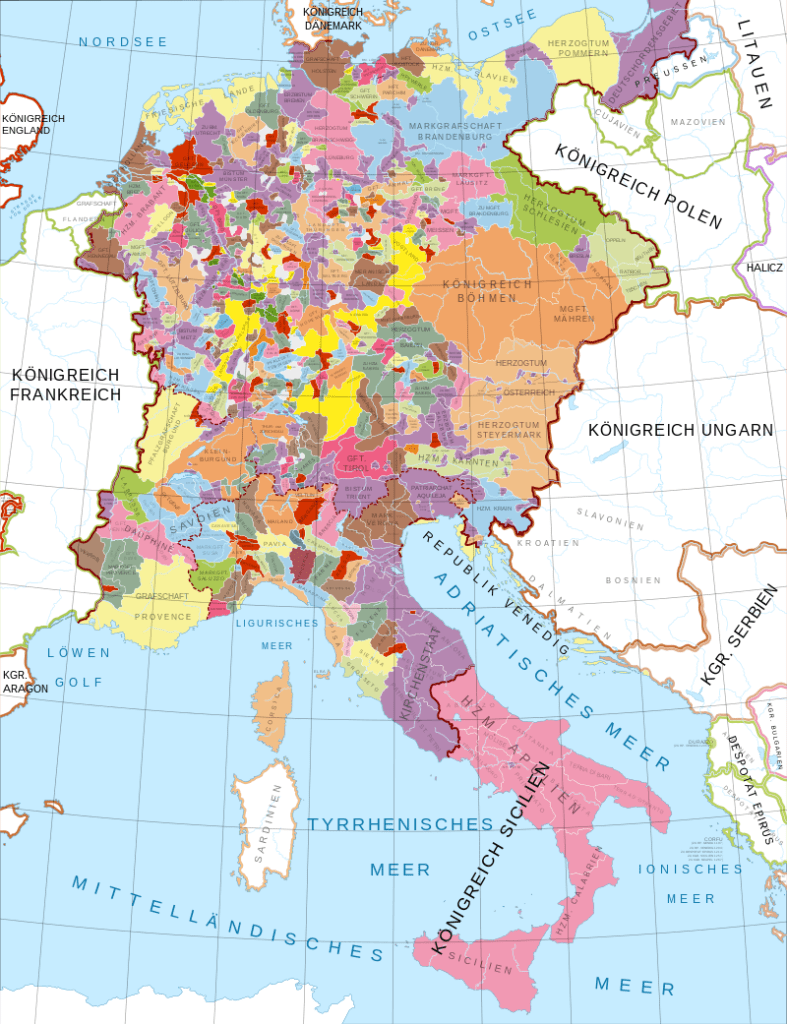 Jak widać historia Niemiec jest bardzo zawiła i zagadkowa. W 1273 roku królem został Rudolf I Habsburg. Od 1438 na tronie niemieckim na stałe zasiadła dynastia Habsburgów, wywodząca się z Górnej Alzacji. W XIII wieku przejęli oni Austrię i Styrię po wymarłym rodzie Babenbergów. Dzięki układom z Jagiellonami zdobyli na stałe trony czeski i węgierski. W 1415 Hohenzollernowie, wywodzący się ze Szwabii, otrzymują od cesarza Brandenburgię. W XVII wieku wzrasta potęga Prus.